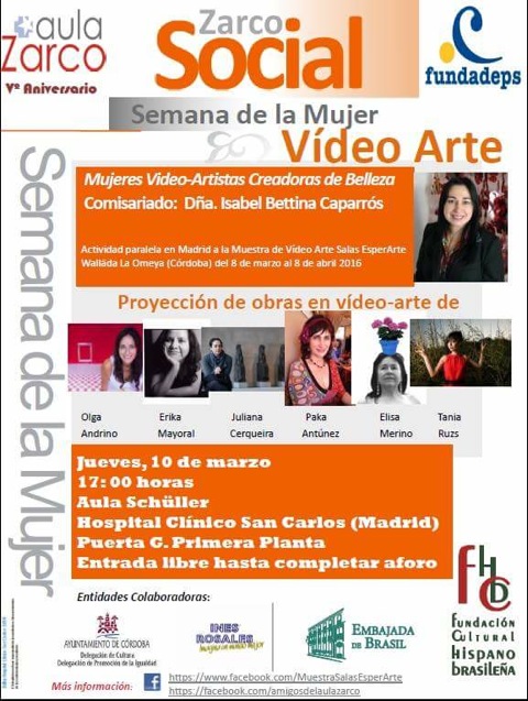 En marzo de 2016 he participado en el evento Mujeres Video Artistas Creadoras de Belleza, organizado por Aula Zarco en el Hospital San Carlos de Madrid